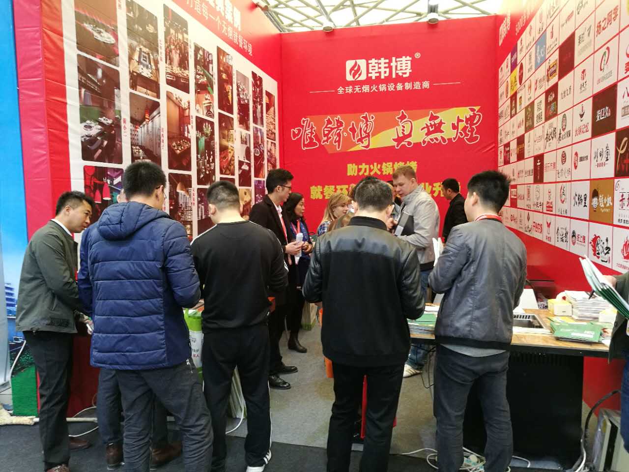 現場客戶咨詢也接連不斷,工作人員正在一一耐心的介紹。就連外國朋友也被,韓博新一代無煙火鍋設備所吸引,前來參觀、咨詢,韓博品牌值得信賴!
